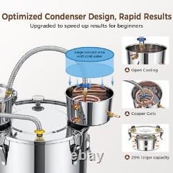 VERSATILE APPLICATIONS: Our alcohol distiller kit, with its multifunctionality and thickened bottom design, is suitable for various heating methods, including gas stoves, wood fires, and induction cookers. Whether you######x27;re making distilled water, essential oils, whiskey, wine, or other spirits, it handles them all with ease, offering endless distillation possibilities.