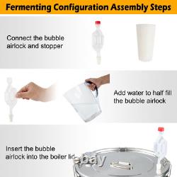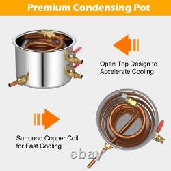 Description: Features: Abundant capacity of 10 gallons to share with friends 3 stainless steel pots bring a professional and safe home brewing Thumper keg contains different materials for added flavour Thermometer having Fahrenheit and Celsius makes a more precise control Copper tubes with great thermal conductivity for efficient cooling One-way exhaust valve, sealing rings and buckets provide a tighter sealing Extra sealing washers and Teflon tape are included to connect parts firmly Side handles for more convenient move Suitable for the firewood, gas stove, induction cooker, etc. Detailed user's manual to help you to make your desired wine Specifications: Color: Silver Material: Stainless Steel, Copper Boiler Pot Size: 38 cm x 40 cm (D x H) Thumper Keg: 20 cm x 12 cm (D x H) Condensing Pot Size: 18 cm x 11 cm (D x H) Capacity: 38 L/8.5 Gallon Net Weight: 6 kg Package includes: 1 x Distiller Set 1 x Instruction Features: Specifications.