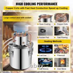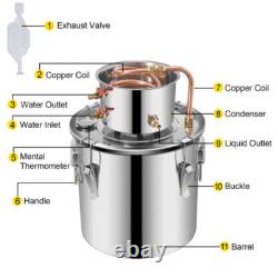 5Gal/20L 2Pots Water Alcohol Distiller Moonshine Still Wine Brewing Kit Home DIY. [Large capacity, for home use] 5 gallons 20L, convenient for enjoying happy time with friends at home. [Quick Cooling] Copper wire conducts heat quickly, has good cooling performance and speeds up the cooling speed. [Easy to use] Built-in thermometer, more efficient and accurate temperature control to ensure better distillation results.
